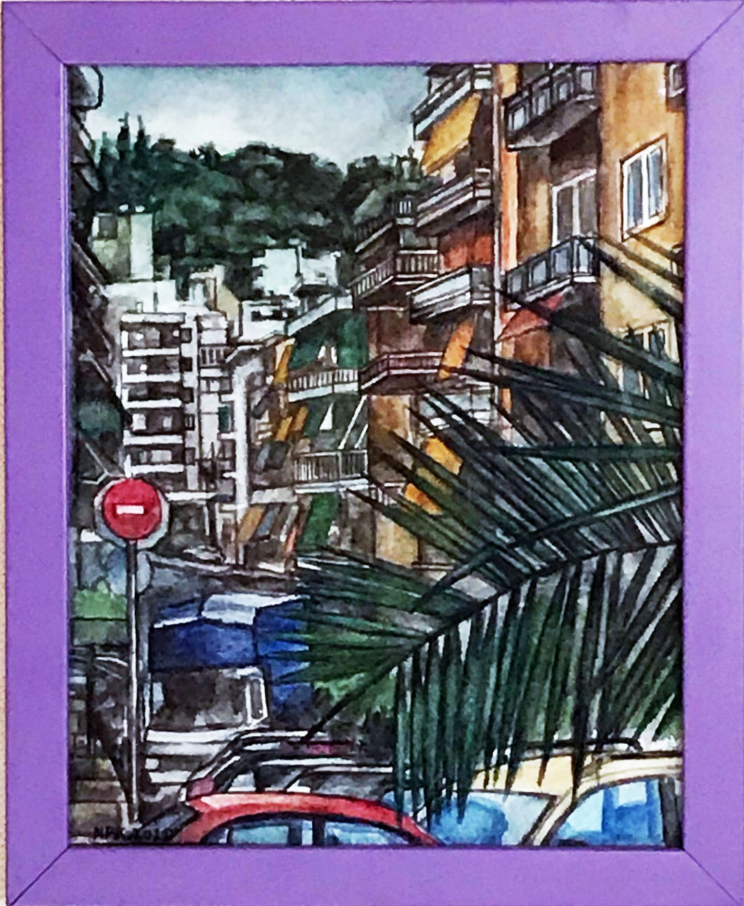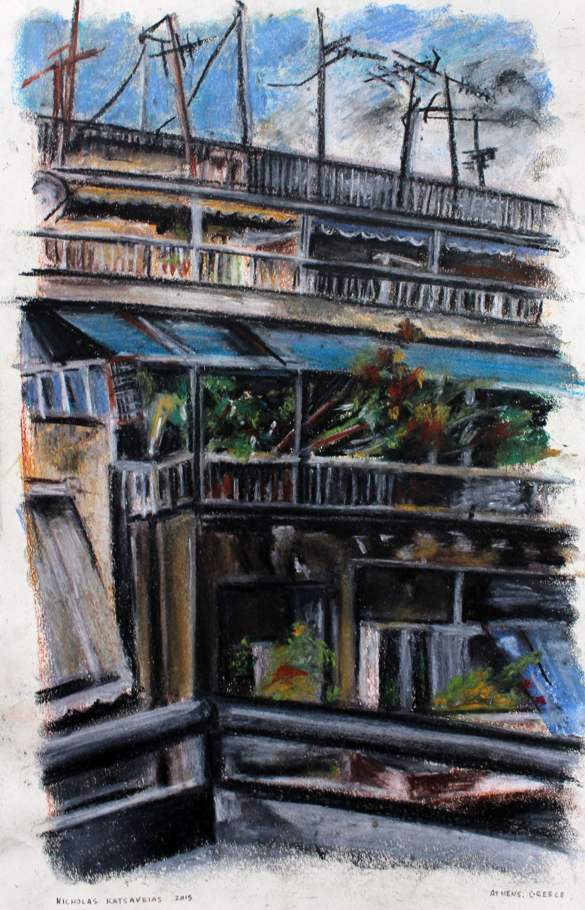 View From Balcony in Athens I - Pastel On Paper- 2024